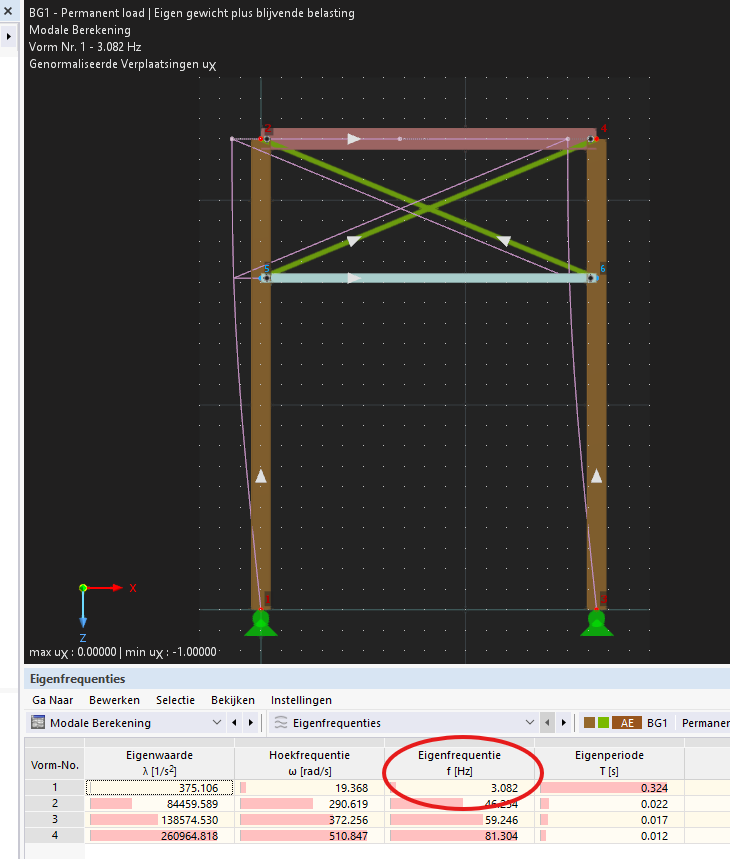 RFEM rekent razendsnel de eigenfrequentie uit en de daarbijbehorende staalsterktes. Dat scheelt rekenstappen en levert sneller betrouwbare resultaten op.
